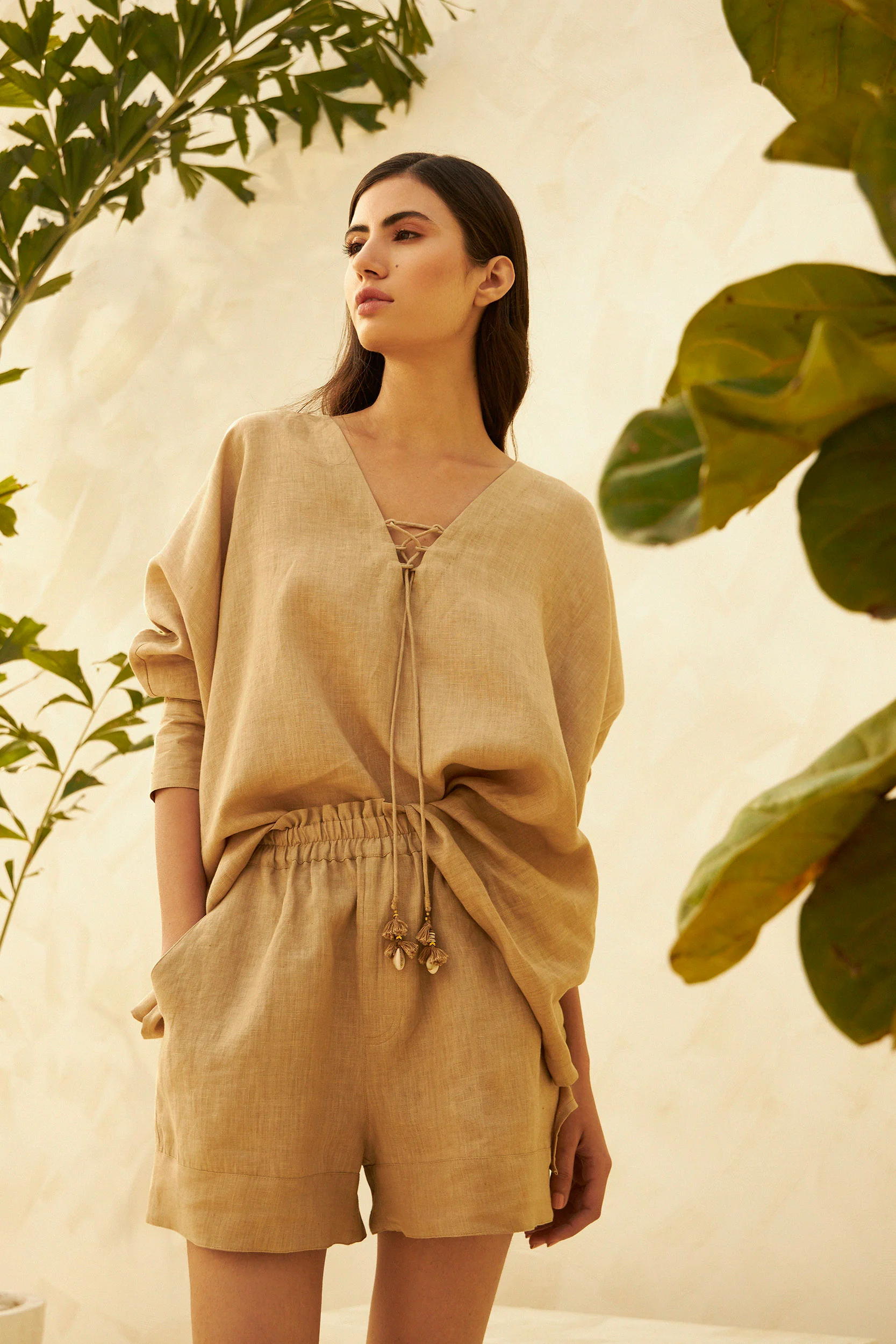 Comfort fit, MUST HAVE, high waist linen shorts with an expandable waist and side pockets